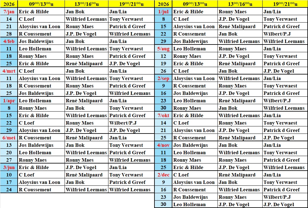 Dienstregeling Woensdag – 2026